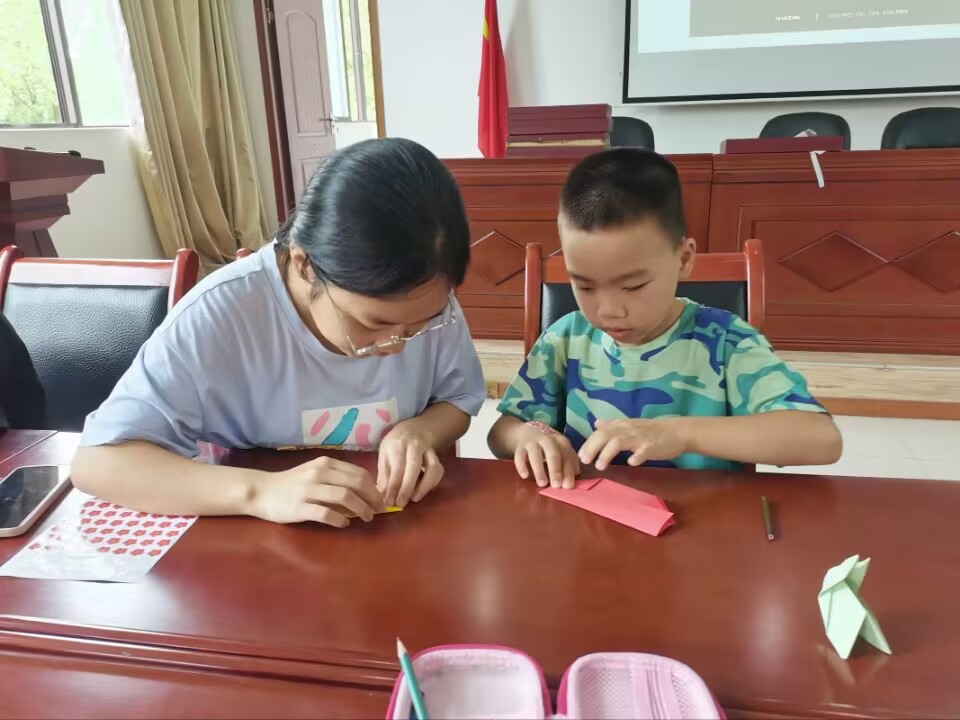 志愿者带领小朋友做手工