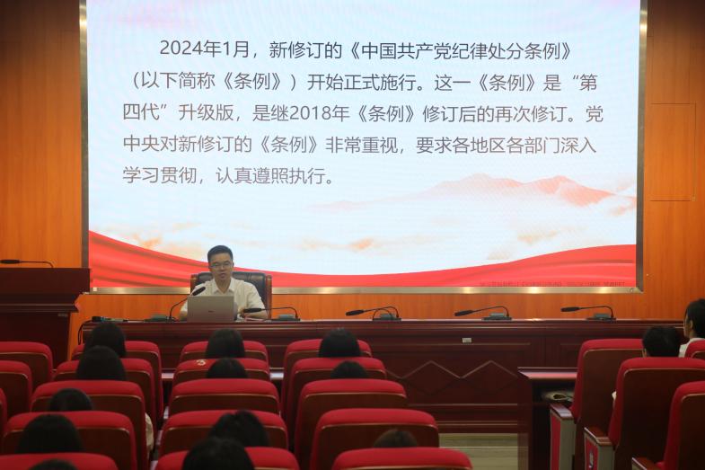 会议伊始,王军书记回顾了《中国共产党纪律处分条例》(后简称《条例》)的修订历程,指出这是自党的十八大以来的第三次修订,体现了党中央对全面从严治党战略方针的坚定决心。他强调,新修订的《条例》不仅是对纪律规范的更新,更是对党员行为的严格要求。在党课中,从《条例》的修订背景与意义新增与修改内容网络言行规范等方面进行了深入解读。他最后强调,毕业生党员作为即将步入社会的新鲜力量,更应以身作则,带头遵守党纪国法,以实际行动维护党的形象,为社会做出积极贡献。
