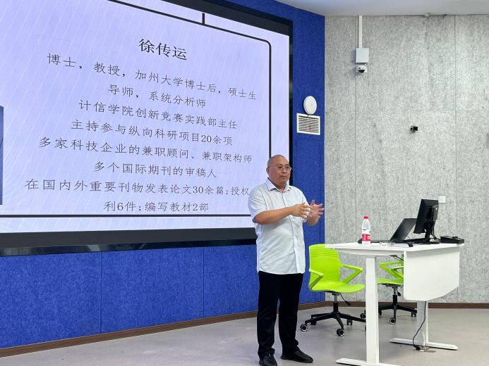 讲座上,徐传运教授对“ICDIO编程夏令营”进行讲解,并辅以自身经历给同学们提出三点建议。一是鼓励同学们学会学习、充分利用暑假时间。二是希望同学们可以多和老师交流,获得更多的经验。三是建议同学们多参加比赛,丰富自己的履历。