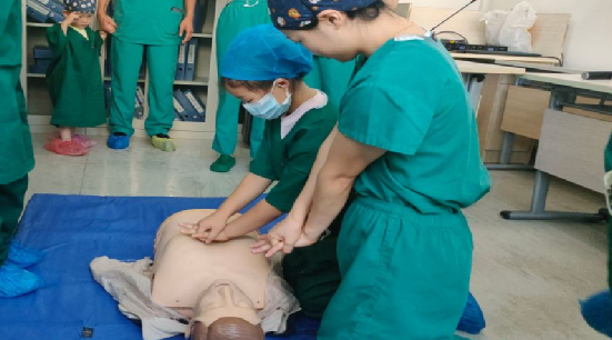 “心脏骤停的黄金抢救时间仅有4-6分钟,每一秒都关乎生命存续。”在心肺复苏教学环节,医护人员通过“理论拆解+现场演示”,详细说明胸外按压的位置、频率等核心要点,并指导孩子们轮流在模拟人上练习,让抽象的急救知识转化为可操作的实践技能。