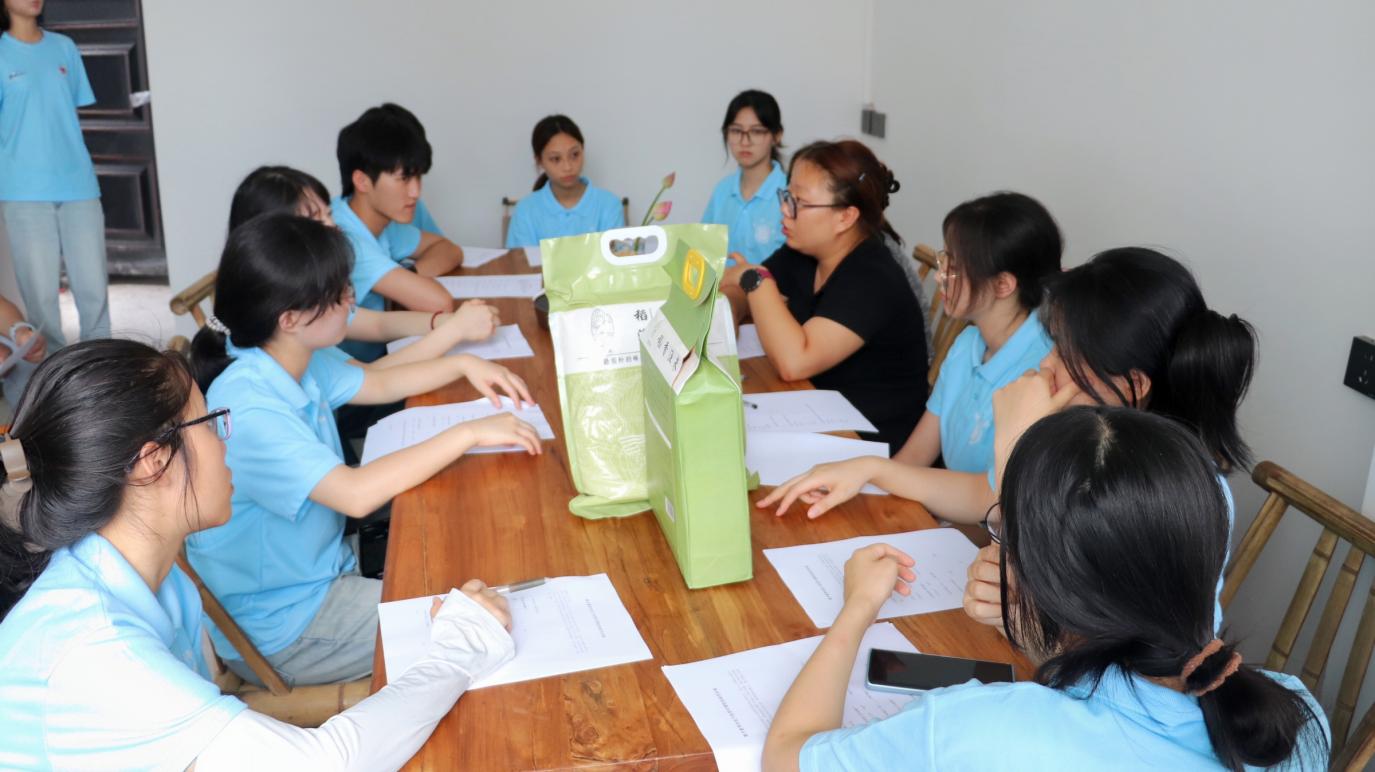 产品培训环节,项目负责人大学生漆珊为了乡村振兴开拓项目,为“稻香经愿”团队重点讲解鸣玉镇特色产品稳糖米与油菜花油。她从两种产品的种植环境、营养成分讲起,详解稳糖米的低GI特性、油菜花油的压榨工艺,以及产品背后的乡土故事与市场潜力。团队成员边听边记,不时追问细节,通过培训深入了解产品核心优势,为后续精准推广与高效助销打下扎实专业基础。
