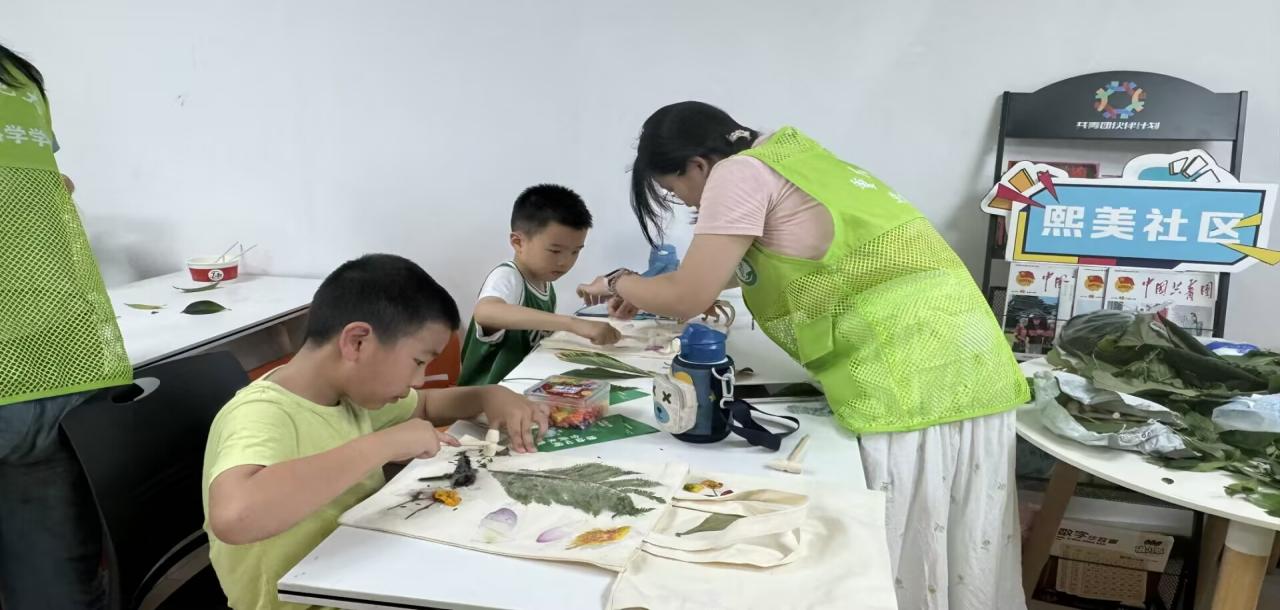 活动前期,志愿者们做了充分准备。他们提前搜集了多种形态各异、叶脉清晰的植物叶片,如枫叶、红花檵木、梧桐叶、三叶草、格桑花、美人蕉等,确保拓印效果丰富多样;同时准备了白色帆布包、环保颜料、锤子、安全剪刀等工具,为活动顺利开展提供物质保障。