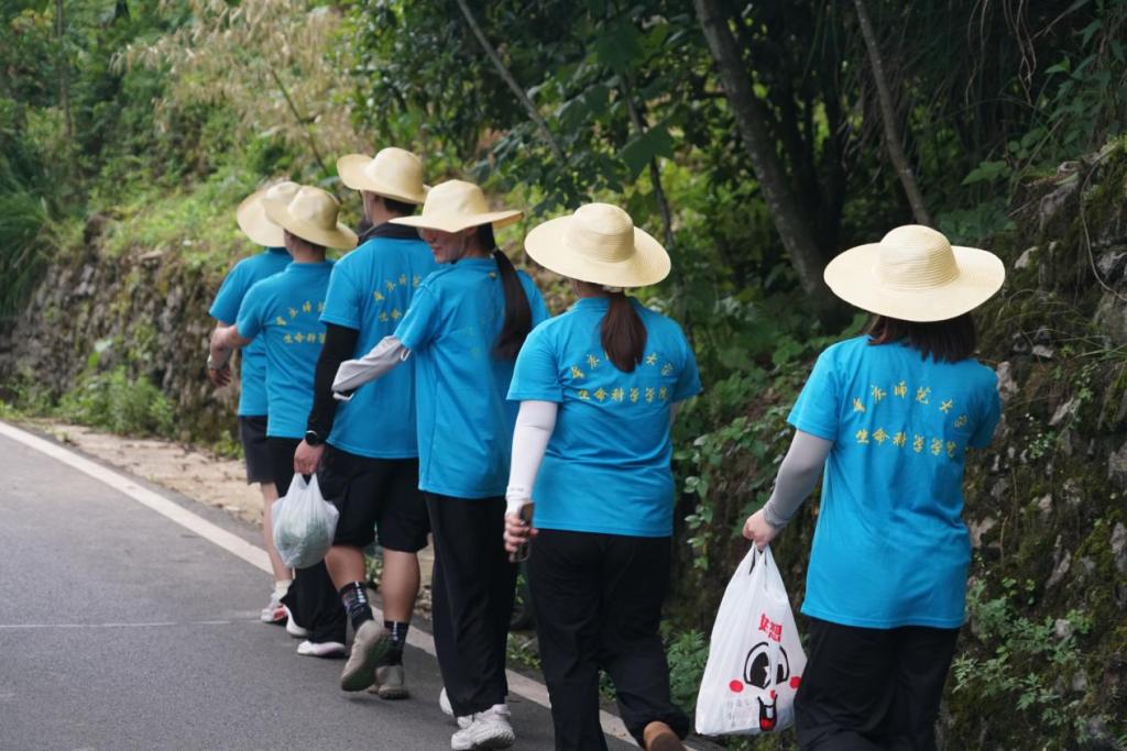 2025年7月6日下午3点,烈日高悬,M88生命科学学院“本草振兴”实践团的7名队员,背着装有标本袋的帆布包,踏上了前往甘泉村周边山林的征程。当日气温逼近35℃,炽烈的阳光炙烤着大地。队员们每走一步,额头的汗珠便不断滚落,浸湿的衣衫紧紧黏在背上。然而,高温与艰难的路途并未让他们有丝毫退缩,反而更加坚定了探索的步伐。