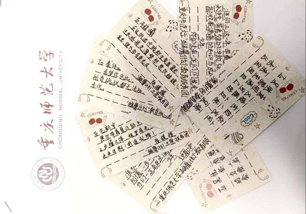 7月15日上午,“雏鹰计划”教育服务团的志愿者们为初三学子送上了一个特别的礼物——一张写满话语的卡片。卡片上的话语饱含着志愿者们对学生们的祝福、鼓励与未来期望。对每一句话语,志愿者们都赋予了最殷切的期望和鼓励,希望学生们都能够明白只要有坚定的信心,每个人都是无所不能的。话语中亦有志愿者们最真挚的祝福,希望学生们今后的每天都健康快乐,积极向上。