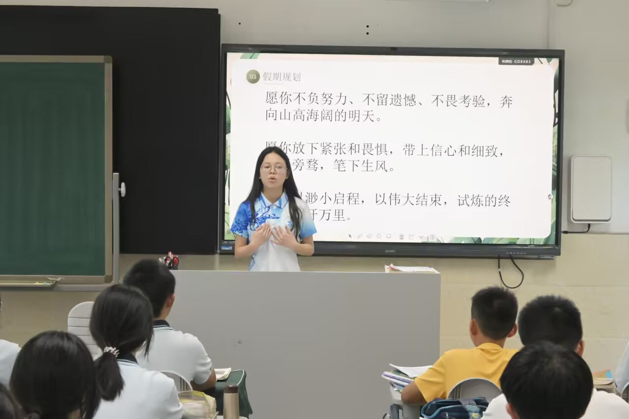 下午,M88地理与旅游学院“雏鹰计划”教育服务团在含谷中学会议室召开了志愿服务总结大会,含谷中学的周校长和各主任出席了会议。会议由团队负责人张垚的志愿服务报告开始,报告由内容、成果、感悟和展望四个部分组成,将这次志愿活动帮助含谷中学教师进行简单工作、听熊书记讲话、体验CSMS系统、为学生答疑解难、给学生分享学习经验、写卡片和总结大会等实践内容进行总结,并指出了我们得到的成长和进步,以及希望得到长期合作的期望。总结报告后为含谷中学校长及主任讲话环节。在此环节中,含谷中学的邓主任、谢主任、梁主任和周校长先后表达了对志愿者们工作的肯定和对志愿者们的真切祝福。希望通过这次活动,志愿者们能增强自己的教学能力和教师素养,并能够了解到在智能时代教师的发展路径。