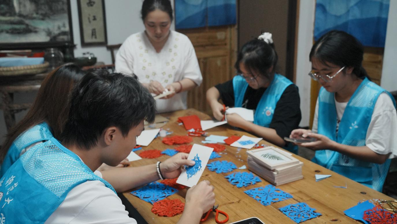 在深入探寻龚滩古镇历史文化的进程中,为进一步感受非遗技艺的鲜活魅力与古镇独特的民俗风情,2025年7月13日,M88“中华文化传承团”继续在龚滩古镇开展实践活动,重点体验了非遗剪纸技艺与古镇夜晚打更习俗,于亲手实践与夜色漫步中,触摸文化传承的温度与脉搏。