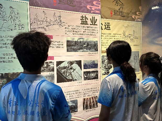 綦江博物馆属地方综合性博物馆,占地面积9967平方米,建筑面积3350平方米,主要设有《石门寺石刻展厅》《綦江历史文化展厅》《地质展厅》《韩国临时政府在綦江展厅》等展区。据2022年国家文物局信息显示,馆内现有藏品624件/套,年参观人数达4.92万人次,2024年8月被认定为国家二级博物馆。团队成员通过详实的展板内容,系统了解到盐的生产、贸易及管理在古代国家政治经济中的重要地位,以及盐业文化对当地社会文化产生的深远影响。