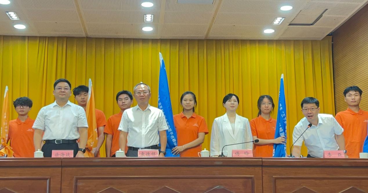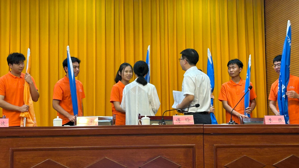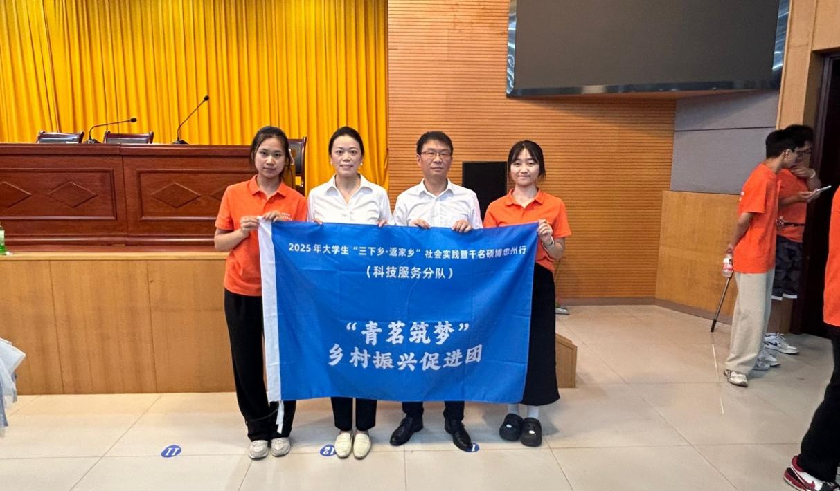 会上,县政协主席袁德祥授予队旗,并殷切寄语青年学生,要秉持“把论文写在祖国大地上”的理念,为助力乡村产业发展贡献青春智慧。文学院“青茗筑梦”团队代表汪巧梨郑重接过队旗,立志扎根乡土沃野,以务实笃行的实干精神积极助力乡村振兴伟大事业。