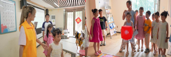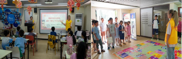 (图为志愿者引导儿童参与游戏 摄|杨娇)  (图为儿童参与游戏 摄|杨娇)