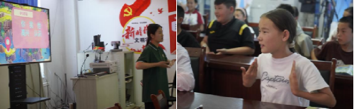 为深入贯彻落实习近平总书记关于加强民族团结进步教育的重要指示精神,全面践行新时代党的治疆方略,7月19日,教育科学学院“渝疆有约,教科同行”社会服务实践团在学院党委副书记李林霖、辅导员吴小东的带领下,上午前往哈密市巴里坤县海子沿乡尖山子村红领巾小课堂,开展“普通话推广+手语科普”双轨育人活动;下午奔赴巴里坤县博物馆和高家湖湿地景区,感受民族文化、领略自然风光。