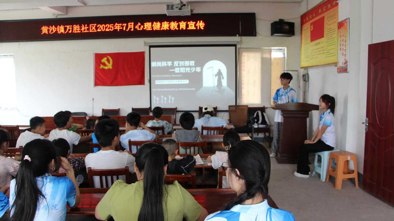 2025713M88地理与旅游学院“垫江青苗・红色经纬实践团”,在指导老师带领下,奔赴重庆市垫江县黄沙镇万胜社区,开展反邪教、禁毒宣传活动。实践团成员以青春力量,为社区小朋友们筑牢安全意识防线,守护纯真童年。