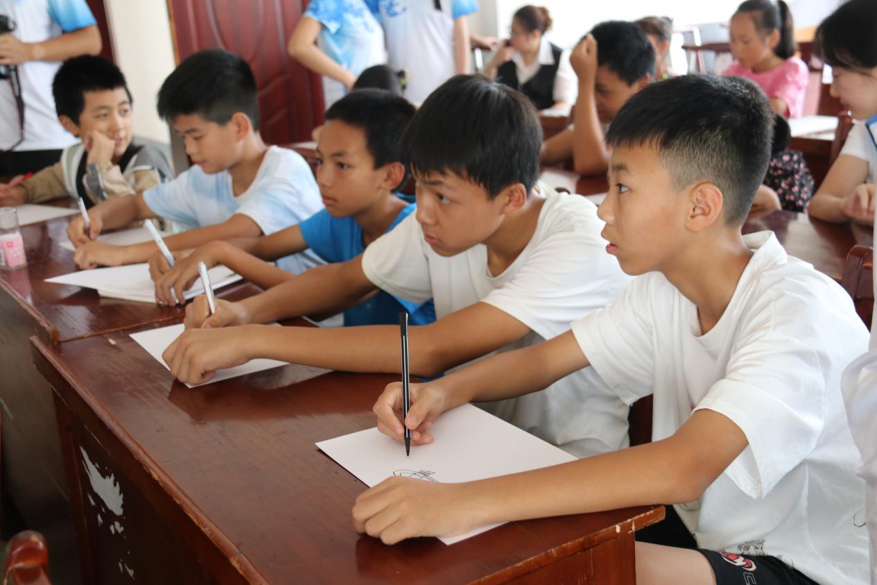 (图为小朋友认真完成绘画作品 侯雯文 摄)