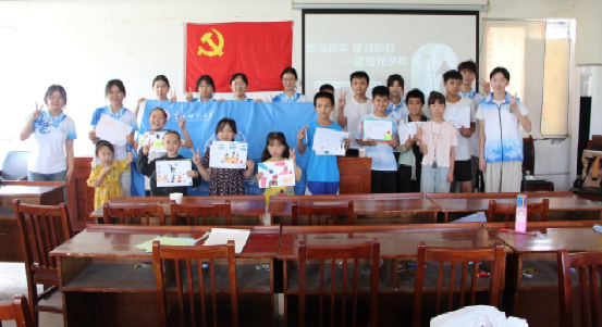 713日上午,M88地理与旅游学院垫江青苗・红色经纬实践团成员准时到达万胜社区便民服务中心。在这里志愿者们以“崇尚科学,反对邪教”为切入点,带领社区小朋友正确认识邪教的危害。课堂中志愿者通过视频播放、案例详解、绘画等方法让小朋友们对反邪教知识有了一定的了解。