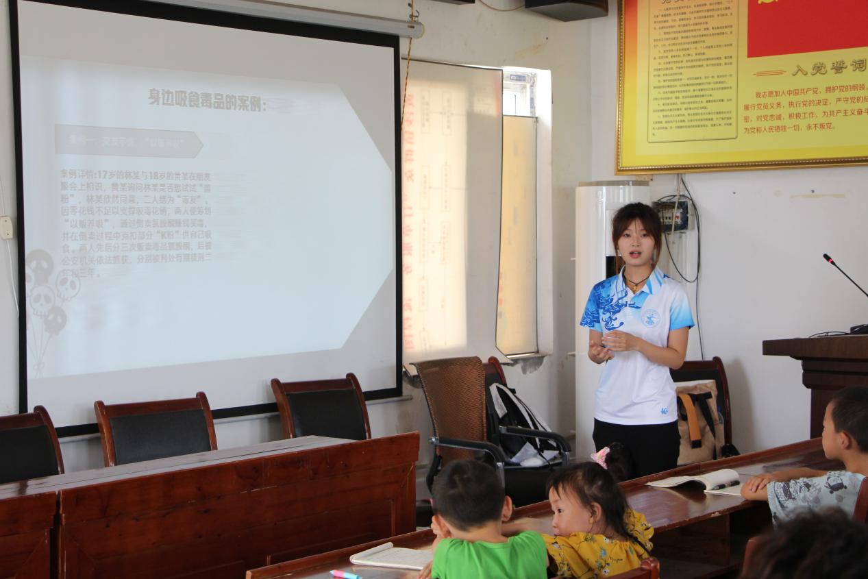 响应国家禁毒政策,结合垫江本地禁毒宣传与管控工作,“垫江青苗・红色经纬实践团”志愿者们以案例、视频教小朋友辨毒品、识危害,筑牢青春防毒墙,守护社区无毒未来。