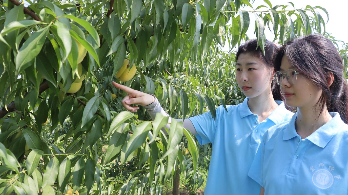 在党委书记的带领下,服务团一众来到经果园进行深入了解。随着队伍的深入,一株株挂着果实的桃树映入眼帘,各位成员分布在四周欣赏桃园风光。同时通过当地所缺失的自媒体传播路径为少云村拍摄宣传视频,助力当地作物的销售,让更多人能够了解到少云水蜜桃、黄桃和脆桃,打造少云特色经果品牌,促进少云村乡村振兴。