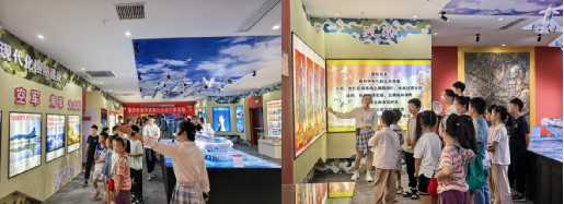 活动当天,孩子们在服务团成员的有序引导下,怀着激动与好奇的心情抵达体验馆。一进馆内,各种先进的国防科技展品便吸引了他们全部的注意力,浓厚的科技氛围让孩子们瞬间沉浸其中。在国防科技发展历程展区,服务团成员结合丰富的图片、详实的文字资料和逼真的实物模型,向孩子们生动讲述了国防科技从古代到现代的发展变迁。从最初简单的冷兵器,到如今的高科技武器装备,每一个阶段的发展都让孩子们惊叹不已。当听到我国在国防科技领域取得的一项项重大成就时,孩子们的脸上都露出了自豪的神情。