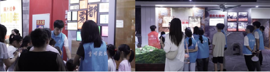 服务团成员带领孩子们参观国防科技体验馆(何欣欣供图)