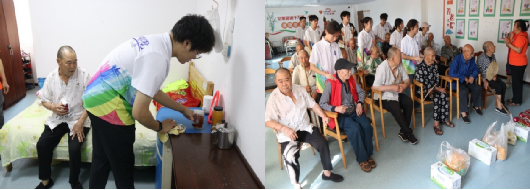 当日清晨,践行团成员集合完毕,携带精心准备的水果、牛奶等物资,驱车前往赶水镇养老院。抵达后,志愿者们迅速分成三组展开行动:第一组为老人们提供按摩服务,从肩颈到四肢,手法轻柔地帮助老人舒缓身体的僵硬与酸痛,不少老人在按摩中露出了惬意的笑容;第二组围坐在老人身边,以拉家常的方式倾听他们讲述过往的生活点滴,从年轻时的工作经历到家庭趣事,耐心的倾听让老人们打开了话匣子,现场不时响起阵阵笑声;第三组则手持扫帚、拖把、抹布等工具,对养老院的客厅、走廊、房间等进行全面清扫,擦拭门窗、整理物品,不放过任何一个卫生死角。经过近两小时的忙碌,养老院的环境焕然一新,老人们看着整洁的房间和热情的志愿者,纷纷竖起大拇指,一位年过八旬的老人激动地说:“这些娃娃就像自家孩子一样贴心,真是太感谢他们了。”