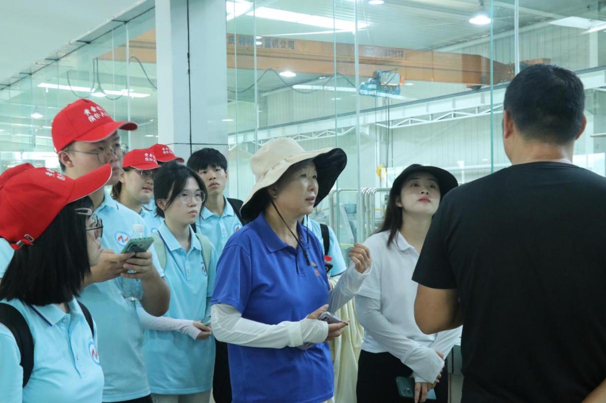 图为实践团成员听福航昇柑橘(加工)有限公司介绍其机器运作