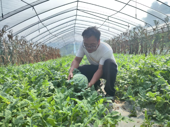 在花坝草莓园,园区负责人向实践队员详细介绍了园区的整体布局、发展历程与创新模式。在农旅融合发展的浪潮中,花坝草莓园凭借稳健的发展态势,成为带动当地产业升级的重要力量。目前,园区已形成20亩稳定的草莓种植规模,依托高标准大棚栽培技术,保障了草莓的品质与产量。同时,园区大胆创新,在原有草莓产业基础上,新增西瓜采摘区,同步推进桃、李、玉米等作物的立体种植,构建起“一主多元”的产业发展格局,大大提升了土地利用率。长达五个月的草莓采摘季与夏季西瓜采摘形成互补,不仅延长了游客停留时间,更为当地村民创造了数十个稳定就业岗位,实现产业发展与民生改善双赢。