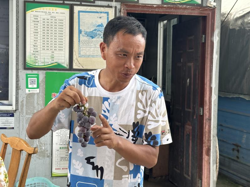 首先,团队重点探访了李葡桃立体果园。果园负责人向实践队员详细介绍了园区的发展历程与创新模式。在村“两委”的积极引导与大力支持下,园区成功引进了一系列市场前景广阔、附加值高的特色品种,丰富了游客的采摘体验与选择。该负责人着重阐释了“立体农业”理念的核心内涵与实践路径,即通过科学规划、空间分层利用等方式实现土地资源效益的最大化。经过持续发展,果园成功转型为集现代农业科技展示、四季赏花品果、沉浸式果树认养、休闲观光采摘于一体的综合性现代农业示范园。尤为可贵的是,果园在自身壮大的同时,积极履行社会责任,在旅游旺季和农忙时节,优先招募当地村民参与果园管理和采摘工作,为数十户家庭提供了稳定的季节性就业岗位和增收渠道,成为带动村民致富的重要引擎。