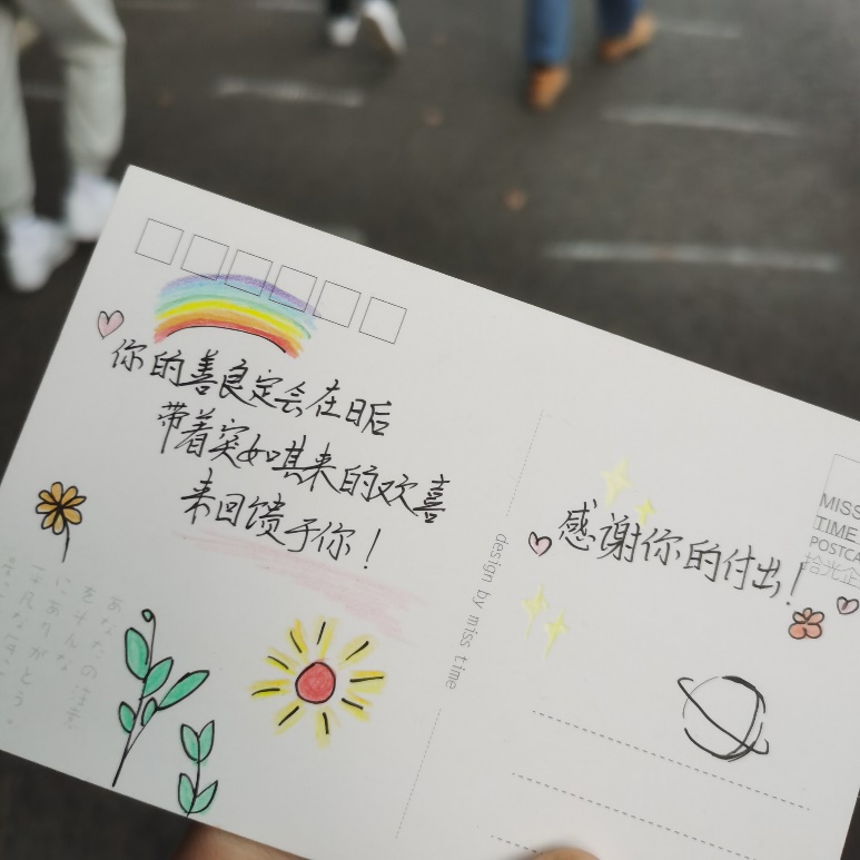此次活动由靳蜜静老师指导,学生心理中心主要负责人宋鑫瑶和学生心理中心所有成员共同开展。活动开展形式为同学们自行制作小卡片。第一队组成了约15人的小队伍,由同学们自行递送;第二队主要由学生心理中心代送,文体部门协助。此次活动共收到近300份心愿卡。同学们制作的小卡片尤为精美,有的制作成立体贺卡,有的为医护人员写书信,有的为志愿者绘画……每一张小卡片都装载了同学们满满的希望与祝福,收到小卡片的医护人员和志愿者都绽放了笑容。每一个小爱凝聚成一个大爱,为被疫情笼罩的M88增添无限的光彩与生机。