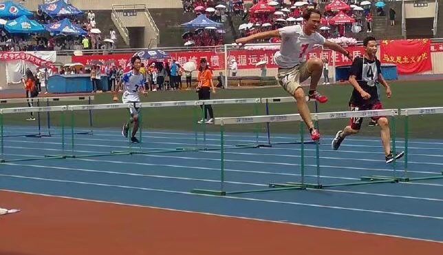 4月27日14时,学生组男子110米栏比赛正式在我校田径运动场拉开了帷幕。骄阳似火映衬了运动员们比赛的热情,矫健身姿是同学们心中难忘的记忆。