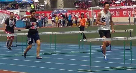 赛场上掌声,鼓声,欢呼声,声声震天响。赛前,来自各个学院的选手都做好了充足的准备,裁判们也紧锣密鼓地为比赛做准备。参赛者们带着年轻的心微笑着走上跑道,心中充满对胜利的渴望。随着裁判们手中红旗的挥动以及发令枪的一声枪响,他们如同离弦的箭,似战场上的骏马,昂着头跨过重重栅栏向终点冲去。不在乎名次高低,不存在输赢之分,即使失误,也坚持一次又一次从起点开始,坚持到底,即是“胜利”!在蓝色的跑道上,留下了他们的飒爽英姿。虽然只有短短的几十秒,但他们都给我们留下了深深的记忆。最终,经过七个小组的激烈竞争,前八强选手脱颖而出,他们分别是(按名次先后):教育科学学院的贺葵制,物电学院的任安云和继续教育学院的徐若瑜(并列第二),经管学院的詹莹莹,继续教育学院的谢良鹏和物电学院吕祖杰(并列第四),研究生代表队的姚磊,继续教育学院的刘海峰和数学学院的杨寒,教育科学学院的黄世芸,经管学院的张扬。