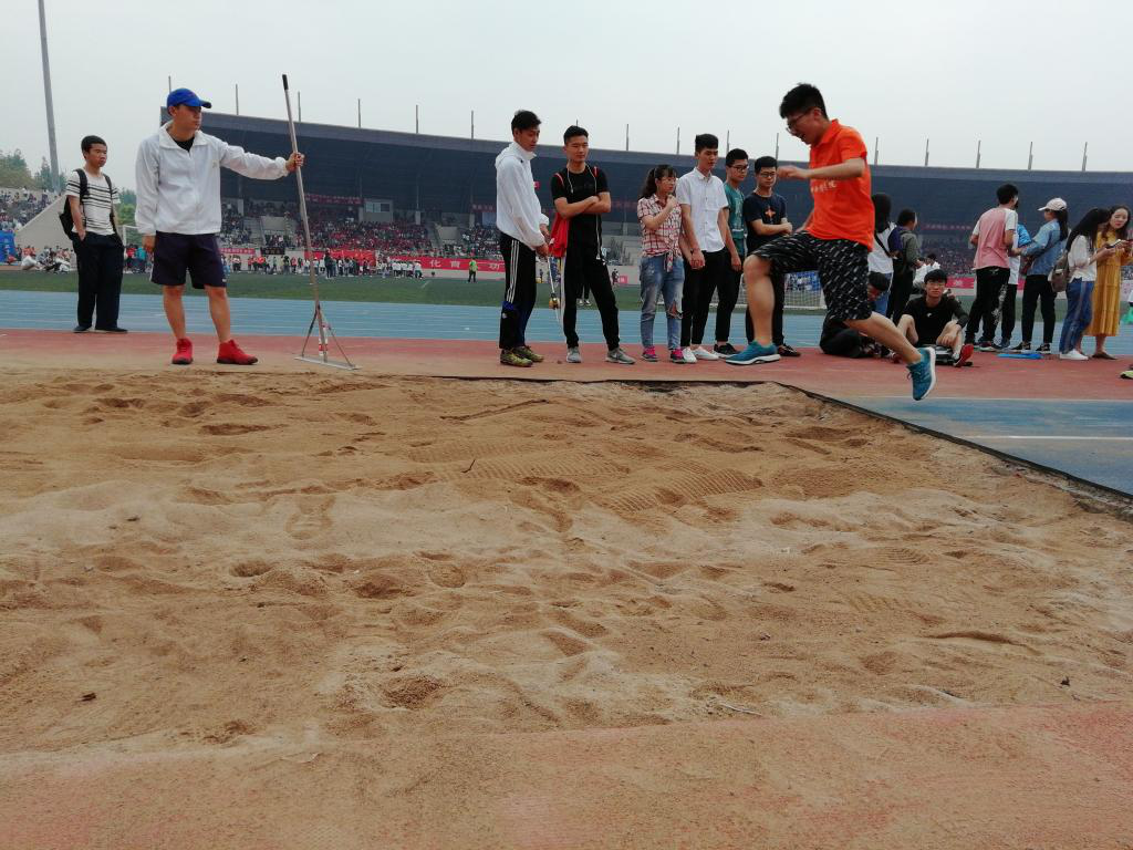 2018年4月28日8时30分,我校第五十三届春季运动会学生男子组三级跳远决赛在大学城校区田径运动场顺利举行。参与此次比赛的有各个学院的优秀运动员以及志愿者和体育与健康科学学院的学生裁判们。
