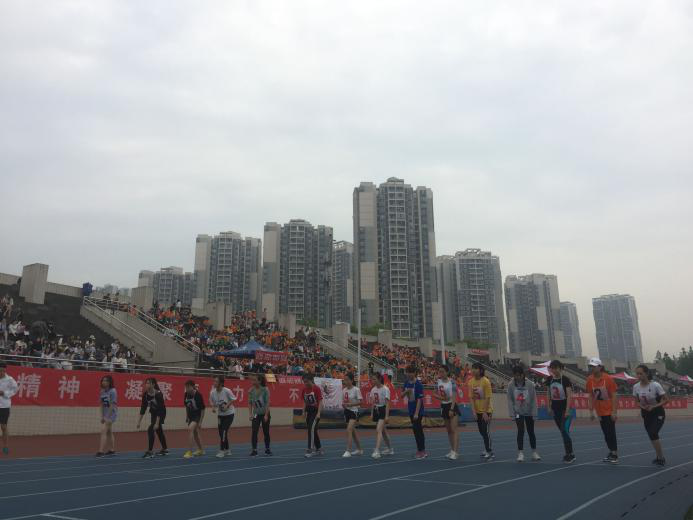 许是天公作美,给运动健儿们在这闷热的天气里拂去太阳过于热情的光辉,用干爽的气候给他们呐喊助威。在赛场上,她们热情饱满,勇敢无惧;她们活力无限,永不言弃。随着“砰”的一声发令枪响,早已磨拳擦掌,跃跃欲试的健儿们犹如离弦的箭一般直冲终点。比赛激烈地进行着。3000米是一项考验选手耐力,毅力和体力的项目。它没有百米冲刺的激烈、兴奋,但她们的选择也足够让人为之动容。看台上的观众用掌声、呐喊声、擂鼓声、甚至于音乐、啦啦操为她们呐喊助威,加油打气。也有志愿者和同学一路陪跑鼓励。她们的力量在那一霎那展现,抬起头望望前面,不论成功与否,只要坚持下去,胜利并不遥远。