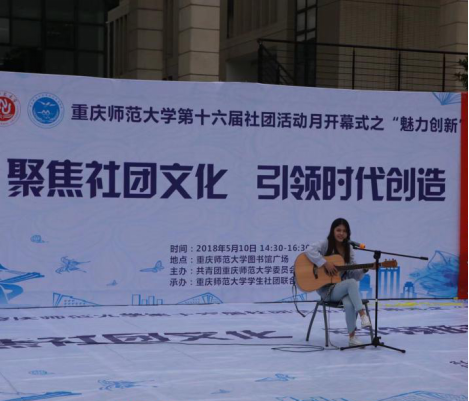 伴随着音乐的响起,未来教师协会的舞蹈串烧让所有人的注意力都聚焦在舞台上,在大家的期待下,开幕式正式开始。马克思主义学院社团部副部谭英杰作为社团部代表发表了演讲,她指出了社团活动开展丰富了学生们的课余活动,让同学们能够更加全面的发展,在以后的校园生活中,社团的活动开展也是必不可少的。紧接着,学生社团联合会主席秦潘宁上台讲话并宣布第十六届社团活动月开幕式正式开始,她承诺了学生社团联合会在以后的活动中必将履行好自己的职责,让社团的活动更好、更全面的展现重师学子的风采。在大家的掌声下,开幕式表演拉开了帷幕。梦想·公益协会的小品《以貌取人》用欢笑的方式让人们深思当代社会对各类人不同的看法,外貌并不能代表一个人的内心,我们对待每一个人,都应该有正确而且公平的态度,同学们尽着自己的一份绵薄之力,为弘扬社会的正能量做着力所能及的事情。最引起观众关注的当属吉他协会的弹唱《遥不可及的你》和《光年之外》,流利的吉他弹奏,悠扬的歌曲演唱,让现场的每个人都不由自主的发出了赞叹,将整个活动的氛围推向了高潮,小品,舞蹈,各个协会都在用自己最擅长的东西展现着自我。活动最后,主持人宣布此次开幕式结束并预祝第十六届社团活动月顺利开展。