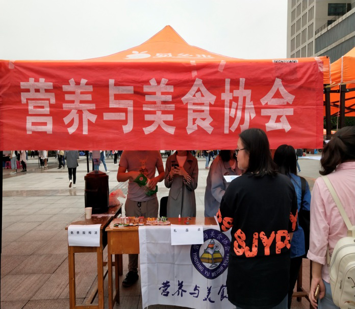 据悉同学们只要走到活动场地就可以凭借在社团联合会大本营领取的活动参与券参与活动,参与人员将会回答五道题,答对三道及以上均可获得由营养与美食协会提供的小礼品一份,无论答对几道题均可获得营养与美食协会的印章,口渴之余还可以领取一杯酸梅汤。活动刚开始就有许多同学慕名前来。大家都踊跃地回答现场工作人员提出的营养健康小常识问题。例如“喝骨头汤真的补钙吗?”“鸡蛋存放时应该哪头朝下?”等问题。接着答对三道及以上问题的同学可以到领奖处去领取小礼品,现场小礼品主要是一些小零食。而只答对一两道题目的同学则可以到印章领取处领取印章。最后现场工作人员还不忘向错题较多的同学普及一下饮食健康小常识。参加此次活动的同学都表示此次活动非常的有意义,他们不仅可以了解一些饮食健康小常识,还可以获得小零食,品尝美味的酸梅汤。随着社团活动月的闭幕,营养与美食协会的有奖问答活动也圆满结束了。