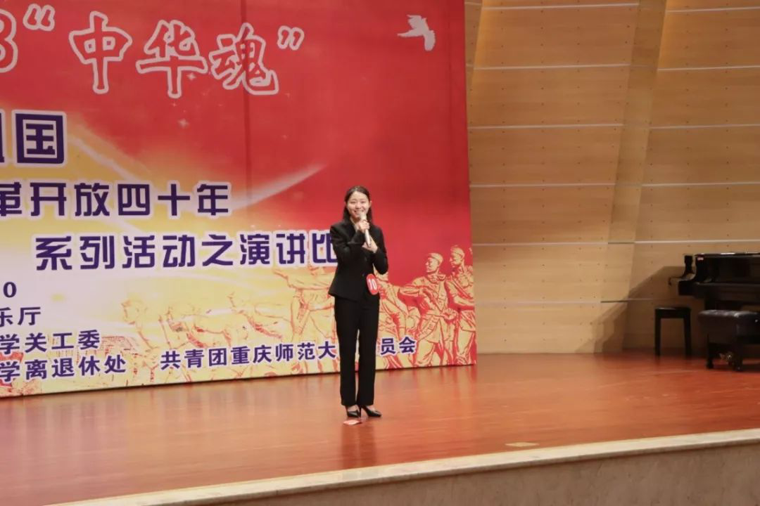 通过各个学院的层层选拔,此次比赛共有十六位来自不同学院的同学进入决赛,依次为大家带来了精彩的演讲。其中,4号选手邬雨璇通过反问的方式回思了改革开放以来中国一路走来的艰辛,而即使艰辛,也有“梦与变”! 8号选手吴昊一身正装,以“中庸不庸”为主题,侃侃而谈,尽显重师学子的风采!15号选手王茜提出,“《创造101》的主题为‘逆风翻盘,向阳而生’,而改革开放就是新中国的逆风翻盘!”而来自文学院的10号选手黄欢欢以小见大,通过对自身求学经历的讲述,以教师素质提高、重视学生德智体美劳全面发展等论据,由点及面的反映了自改革开放以来我国教育的进步与发展,凭借熟练的演讲技巧以93.9分的高分摘得桂冠并将代表学校参加市级“中华魂”演讲比赛。
