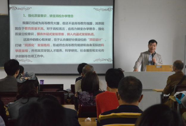 讲座上,袁教授介绍了中国高等教育内涵发展背景下的“双一流”建设。袁教授表示,内涵式发展是高等教育的必然选择,高等学校特色专业建设是优化专业结构、提高人才培养质量、办出专业水平和特色的重要措施,是实现内涵式发展的有力保障。他重点介绍了国家级特色专业的基本内涵、背景以及培育方略问题,认为应该从师资队伍建设、资源保障、制度建设等方面促进特色专业建设。