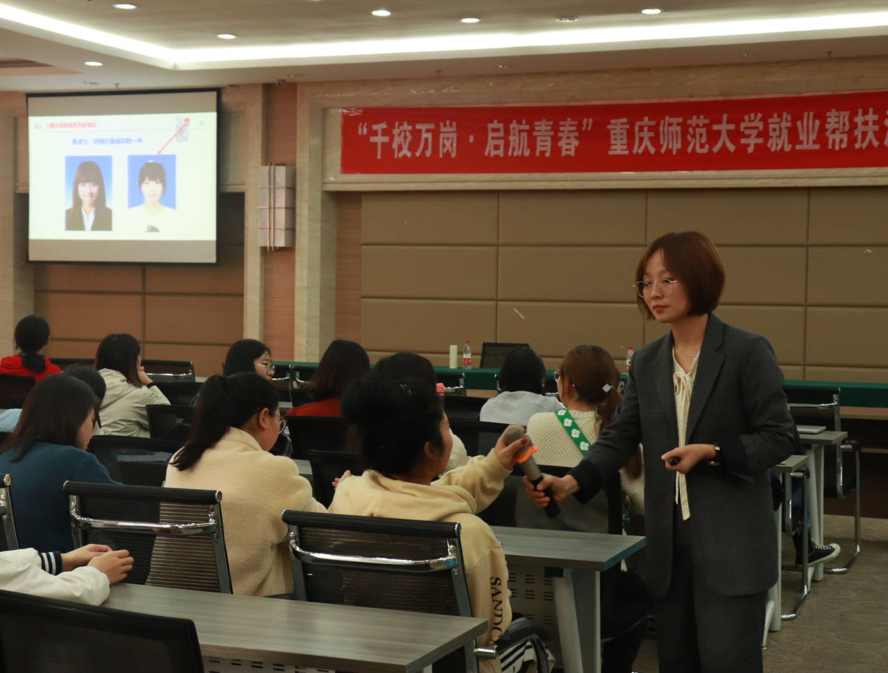 聂兰,重庆三峡学院教师,重庆师高校就业创业指导专家库教师,全国高校就业指导中级培训师,教育部高校毕业生就业协会中级创业导师,中国就业培训技术指导中心职业咨询督导师(高级),BCC生涯教练,具有丰富的就业与创业指导经验。在此次培训会上,为同学们讲解了有关简历设计的“一原则、三步骤、三技巧、七要点、规格与版式、简历投递”给同学们填写自己的简历提供了方向。