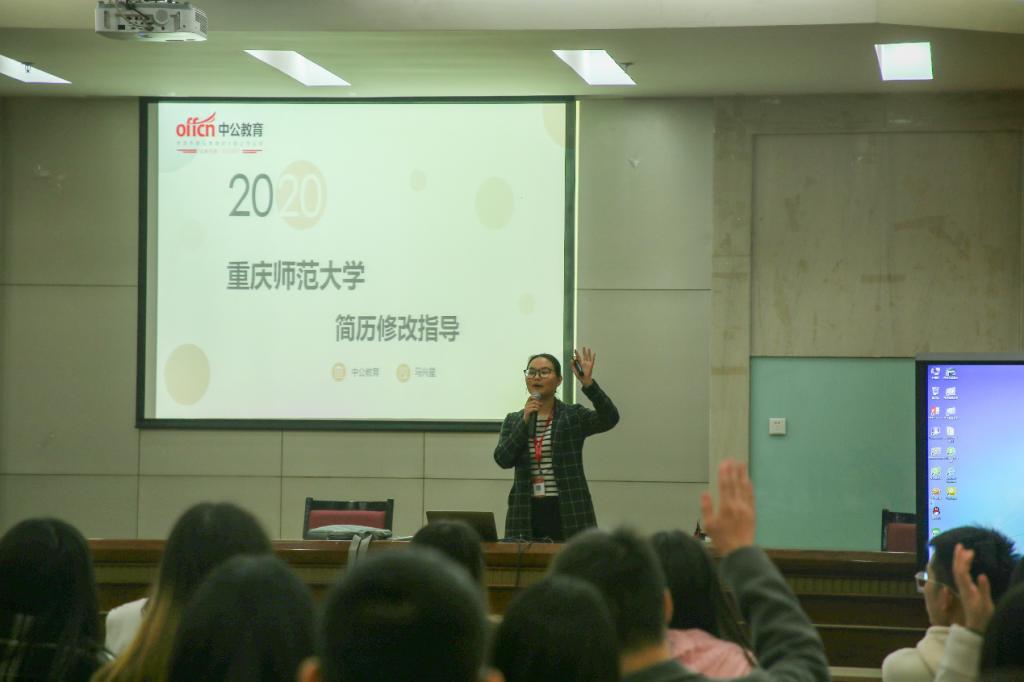 为深入学习贯彻习近平新时代中国特色社会主义思想和党的十九大精神,提高大学生就业能力,增加就业成功率,我校于2019年11月7日晚18:30在校友会堂317举行“千校万岗·启航青春”就业能力提升培训会——简历修改指导,并特邀中公教育马兴星老师为全校各专业近百名前来听讲的学生进行培训指导。