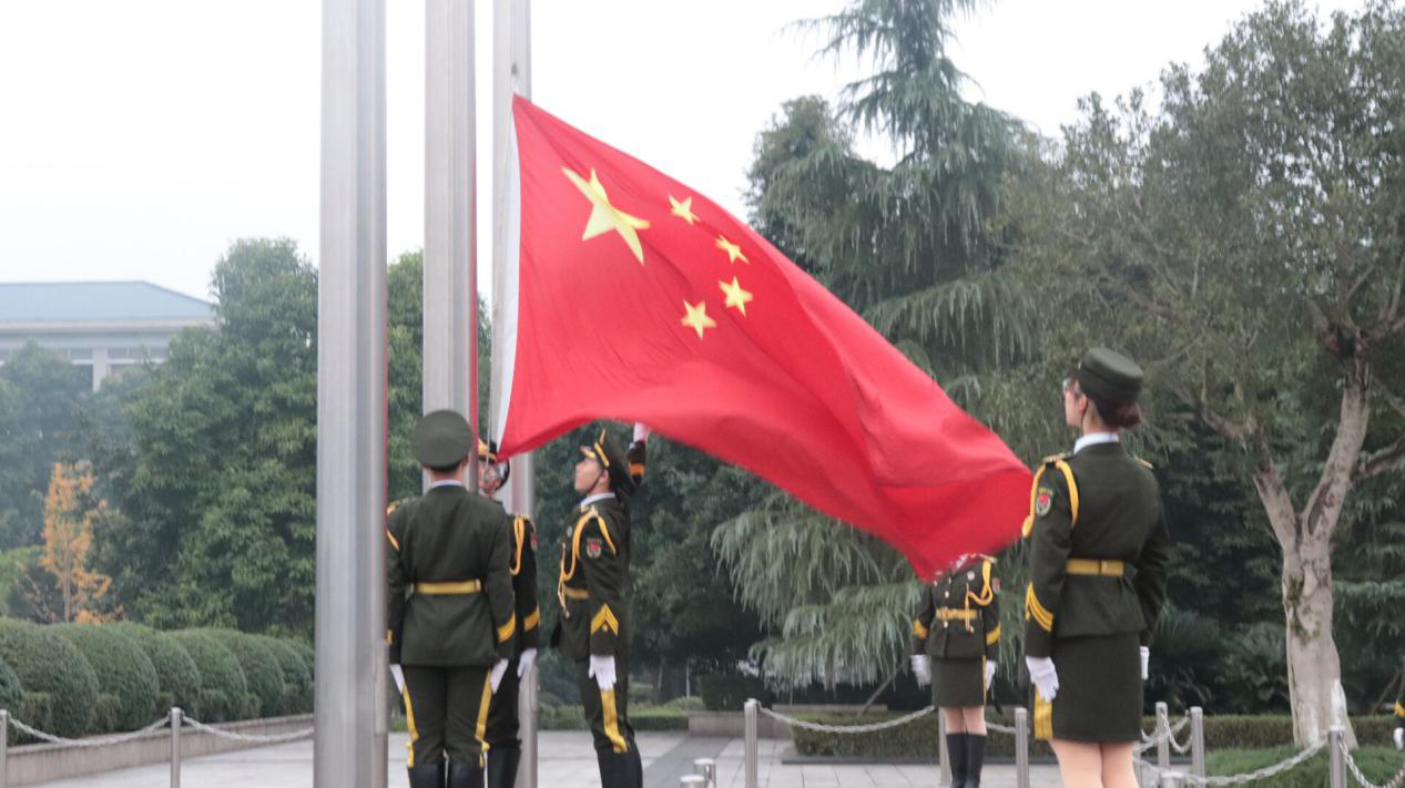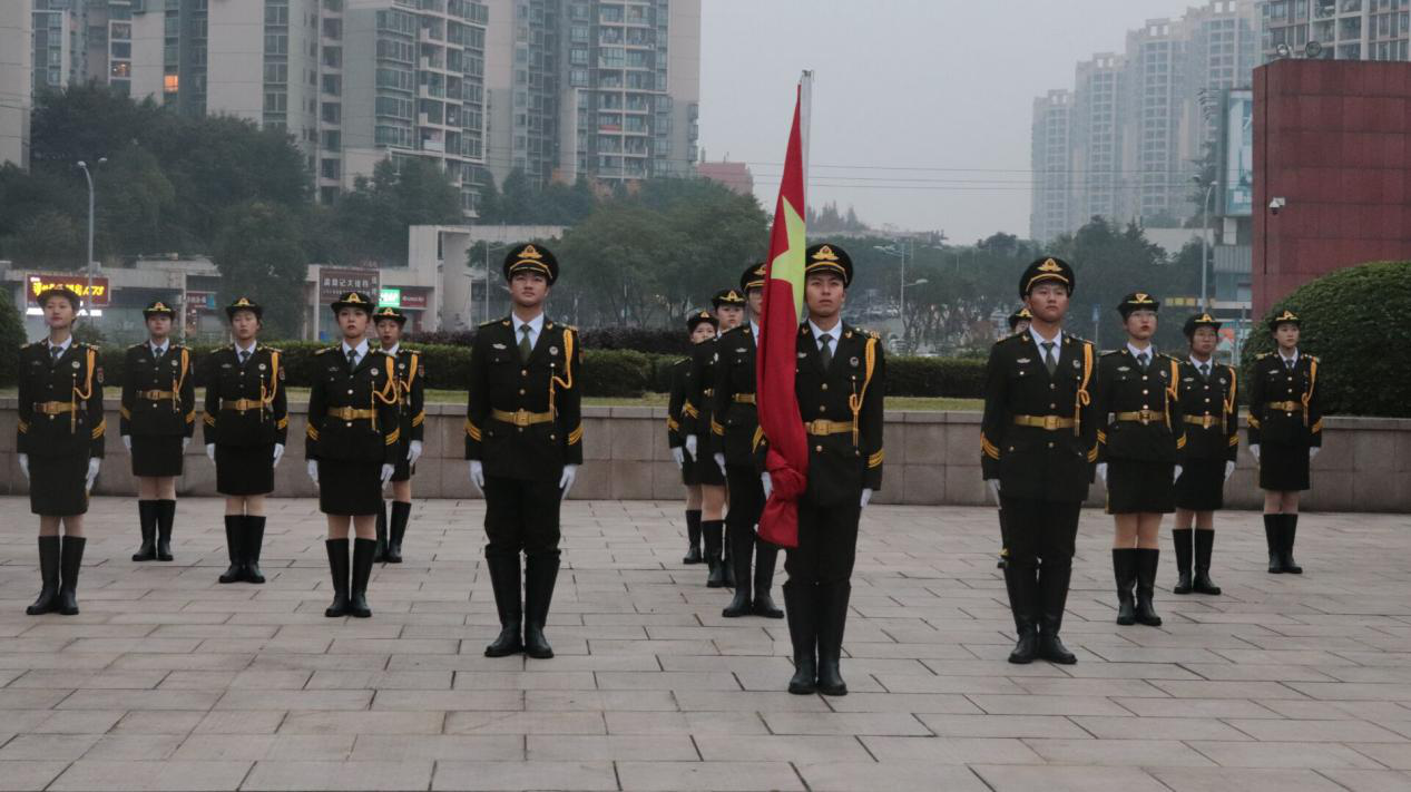 升旗仪式进行第二项,历史与社会学院党委副书记蒋红老师进行讲话。蒋红老师在讲话中提到五星红旗是中华民族生生不息的象征,是中华人民共和国的象征。同时她提出,重庆是一座英雄的城市,在重庆解放前夕,11.27大屠杀致使207名先烈遇难。她告诫所有同学不要忘记苦难,要学会敬畏英雄珍惜现在拥有的来之不易的生活。她激励各位同学从自身做起继承并发扬前辈的奋斗精神,增强爱国意识和热情,为实现中华民族伟大复兴不懈奋斗。