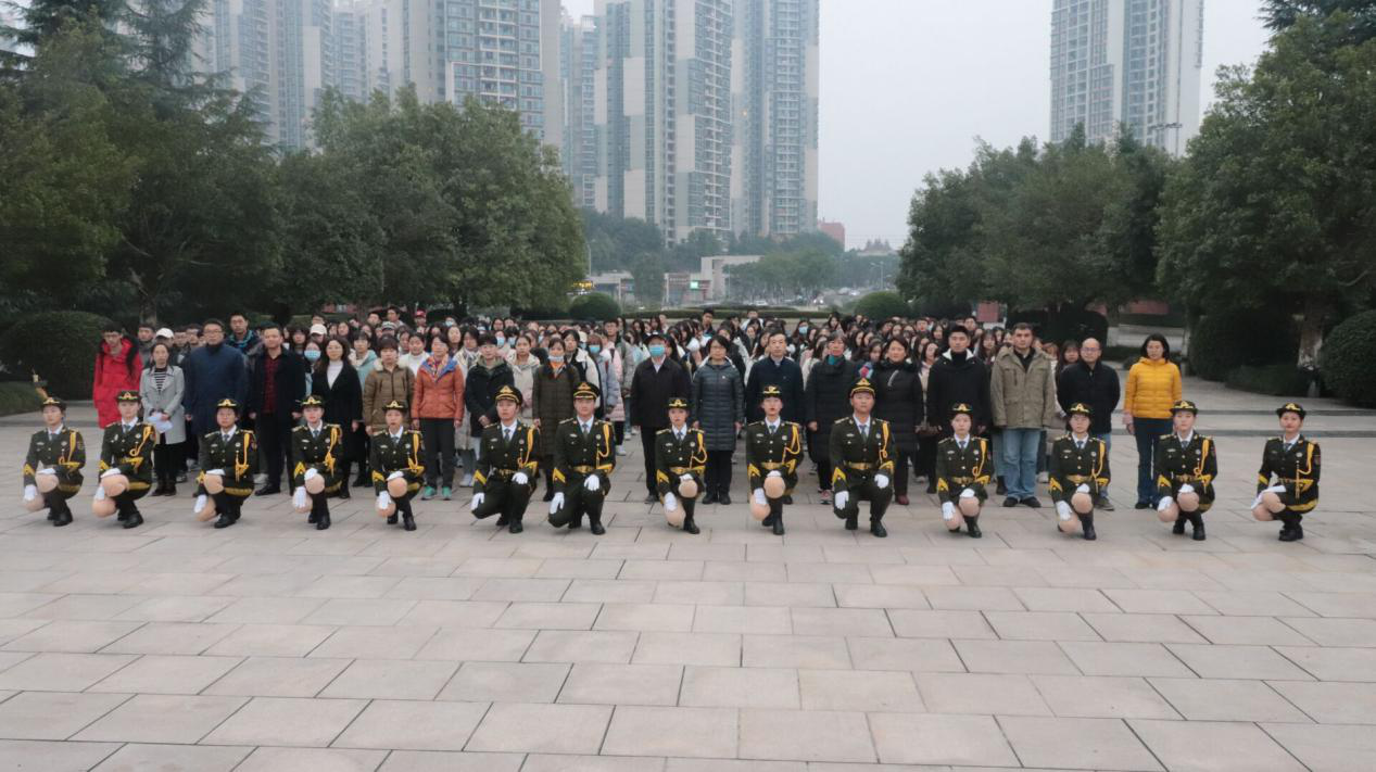 (历史与社会学院教师代表及全体同学、国旗班合影留念)