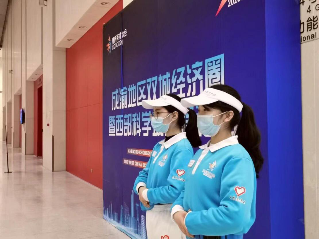 2020年11月场赛会共招募青年志愿者500余名,在70余类岗位上累计服务时长2.45万余小时,服务嘉宾、观众、展商40余万人次,发放资料、物品、接受群众问询服务等共计50万余人次。我校在经过层层选拔64名“蓝精灵”赛会志愿者参与了此次2020重庆英才大会和第十八届中国国际农产品交易会。会议期间,我校各级团学组织、团学干部和“蓝精灵"赛会志愿者在招募、培训、上岗服务等各个阶段都辛勤付出,为此次志愿服务圆满成功贡献了属于我校青年志愿者力量。