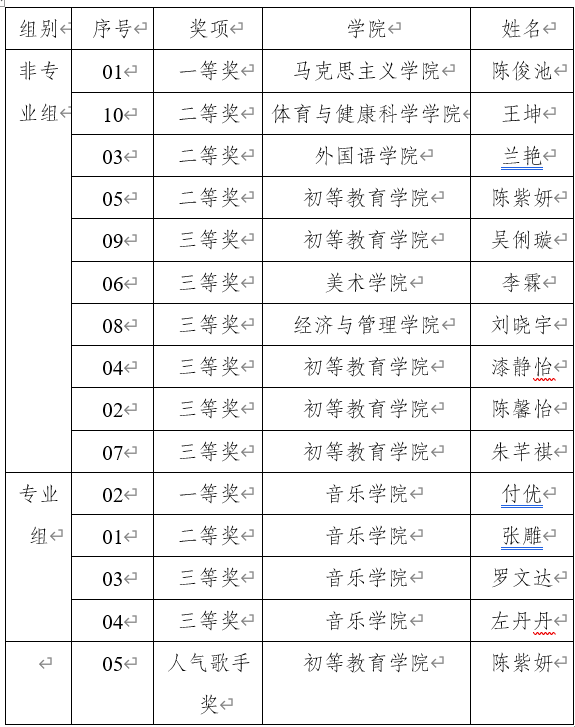20213月下旬至4月初,学校“学党史 强信念 跟党走”主题系列活动之经典歌曲演唱比赛顺利举行。本次活动由共青团M88委员会主办,音乐学院承办,旨在迎接庆祝建党一百周年,重唱经典歌曲,用歌声讲述历史,重温党的发展历程。通过个人报名,各学院代表打分初选,音乐学院代表组成的专业评审团复选,最终留下了14位更为优异的选手。在这14位入围决赛的选手中,经过网络投票,选手陈紫妍以2013票荣获人气歌手奖。48日经音乐学院三位老师线上直播评选,选手陈俊池和选手付优在非专业组和专业组中一举夺魁。付优和张雕两位选手将代表我校参加第40届“校园之春”文化艺术体育活动之大学生歌唱比赛。具体获奖名单如下。
