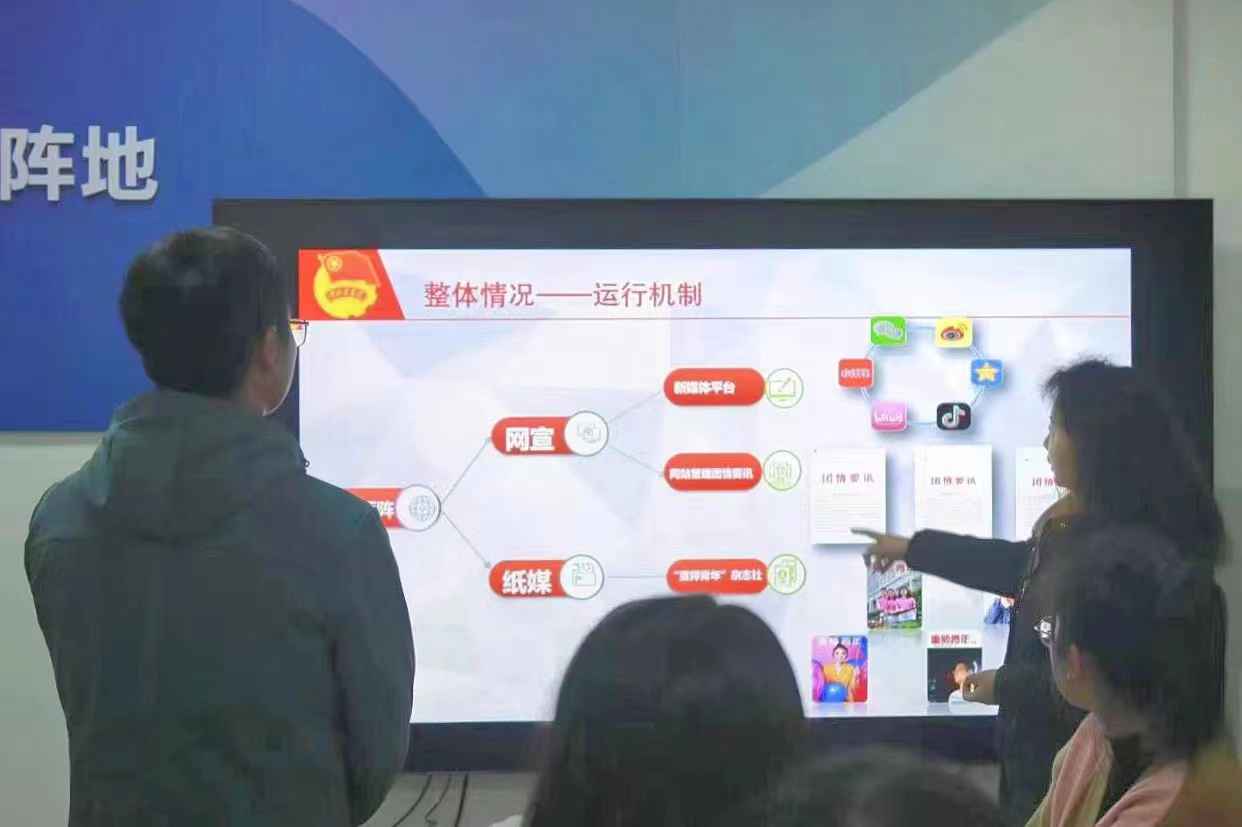 在M88全国高校共青团新媒体重点工作室,高菁励从“发展历程”和“平台影响力”两方面指出学校共青团新媒体重点工作室是促进学校共青团网络育人的主阵地。