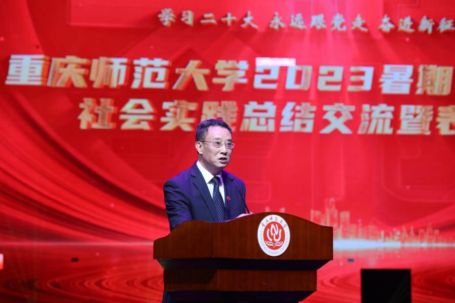 杨如安宣读《关于表彰2022-2023学年度大学生社会实践工作先进集体和先进个人的决定》,累计表彰11个校内单位、36个实践团队、835名师生,包括“先进单位”“先进工作者”“优秀调研报告”“优秀团队”“先进个人”“志愿服务”六个类别。