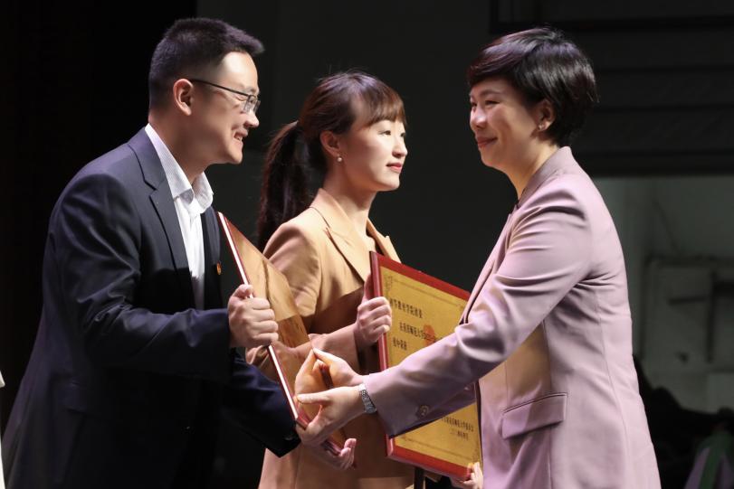 校党委书记张艳及各职能部门负责人为2023—2024学年度M88共青团系统先进集体和个人获奖代表颁奖