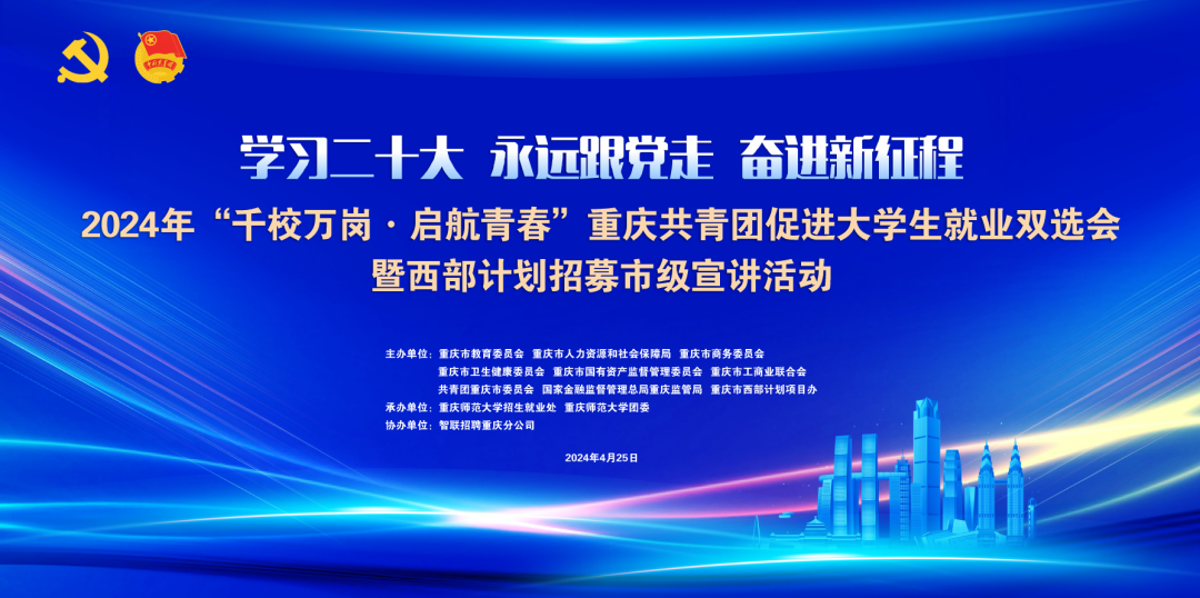 4月25日,由市教委、市人力社保局、市商务委、市卫生健康委、市国资委、市工商联、团市委、金融监管总局重庆监管局、市西部计划项目办、M88、智联招聘重庆分公司联合开展的2024年“千校万岗·启航青春”重庆共青团促进大学生就业双选会暨西部计划招募市级宣讲在M88举行。