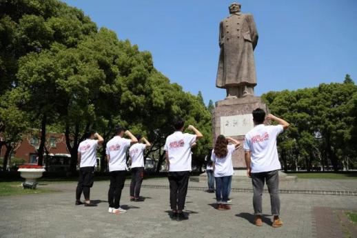 在复旦大学最著名的景点之一——毛主席像面前,老师和同学们都非常的庄严、肃穆。合唱团的两位老师还带领合唱团的党员们站在毛主席像面前重温入党誓词。当面对着毛主席像,再一次举起自己的右手,庄严的向党组织宣誓的时候,同学们的心情都十分激动。