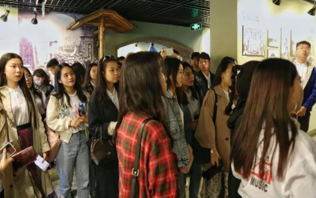在复旦大学校史馆内,讲解员为同学们讲解了复旦大学的发展历史、历届伟人、古籍文献和科研成就,同学们都十分地严肃认真。