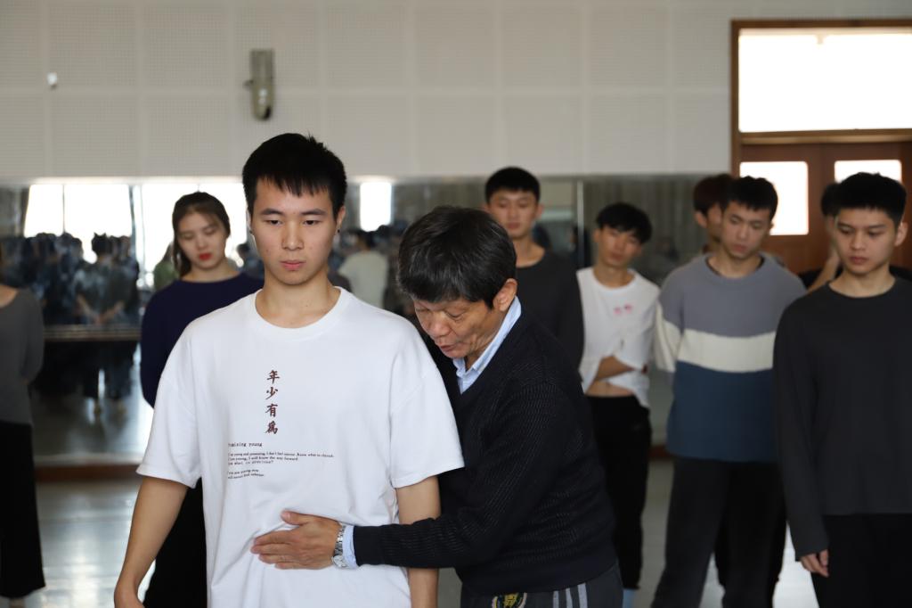 上午9点,音乐学院艺术楼8770舞蹈教室内热闹非凡。曹诚渊老师在此为音乐学院舞蹈系学子开展了专家实践课。他首先向同学们详细讲解了什么是现代舞以及现代舞与传统舞蹈的不同之处。强调了在现代舞训练中,运用丹田的重要性。随后,他将理论与实践相结合,以身示范,为同学进行了进一步的舞蹈动作纠正。