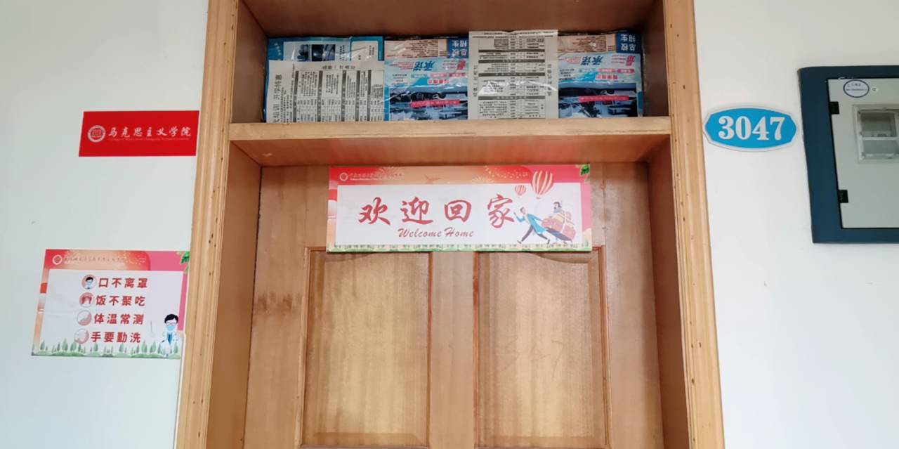 二、返校复学有温情。学院楼门口摆放“共战‘疫’,攻坚克难久别重逢;愿归来,只争朝夕不负韶华――马克思主义学院欢迎您回家!”的欢迎展板;寝室门上张贴的“欢迎回家”暖心标语和防疫注意事项;根据实际需要为全体同学准备的包括拖把、扫把、抹布等清洁用品的“暖心大礼包”使学生在和谐温馨的氛围中缓解紧张焦虑的情绪,适应学校生活。此外,为表达学院对返校学生的欢迎、慰问和重视,5月17日下午,马克思主义学院党委副书记方敏同各年级辅导员老师一起走进学生寝室看望返校同学,并叮嘱返校同学在做好自身防护、注意身体健康的同时应调整心态,适应环境,认真学习,练就过硬本领。
