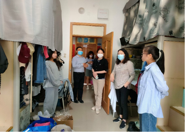同日下午,外国语学院党委书记王放、副书记曹丽以及全体辅导员走访学生寝室、考察园区建设情况,他们与同学们亲切交谈、耐心叮嘱,并针对性的解答了同学们提出的问题,为疫情中的同学们送去了关怀和温暖。王放书记表示,关键时刻,希望大家坚定信心、团结一致、共克时艰。晚上,辅导员将口罩运送至学生寝室发放。