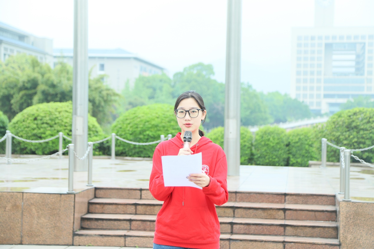 随后,地理与旅游学院张昕玥同学做国旗下讲话。张昕玥同学围绕“感恩、感谢、感动”三个关键词,从学生的角度出发,讲述了学生视角下的疫情防控希望同学们在今后的学习生活中记住,唯有踔厉奋发、笃行不,方能不负青春、建功时代。